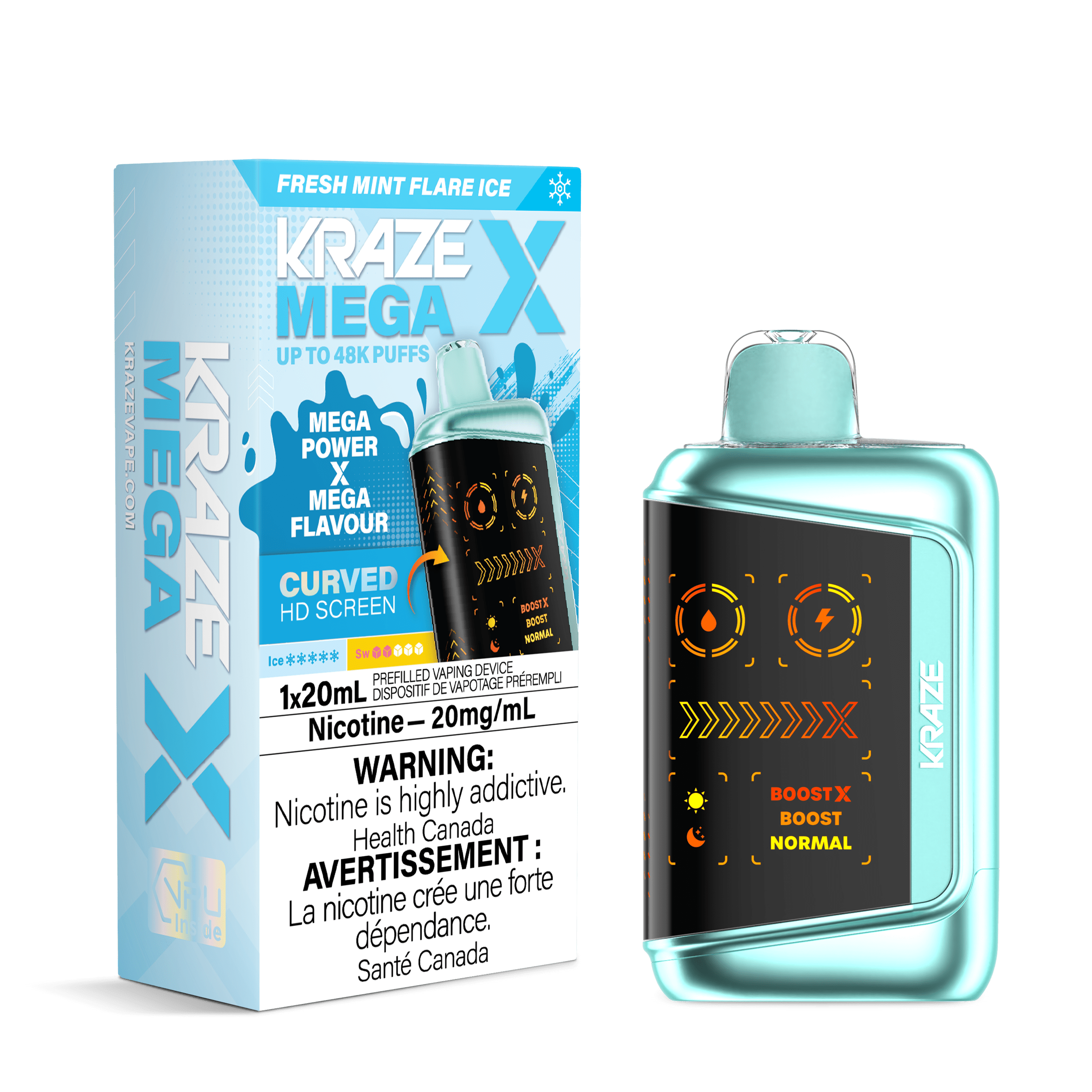 • Up to 48,000 puffs with Normal, Boost, and Boost X modes for up to 28W of Mega power