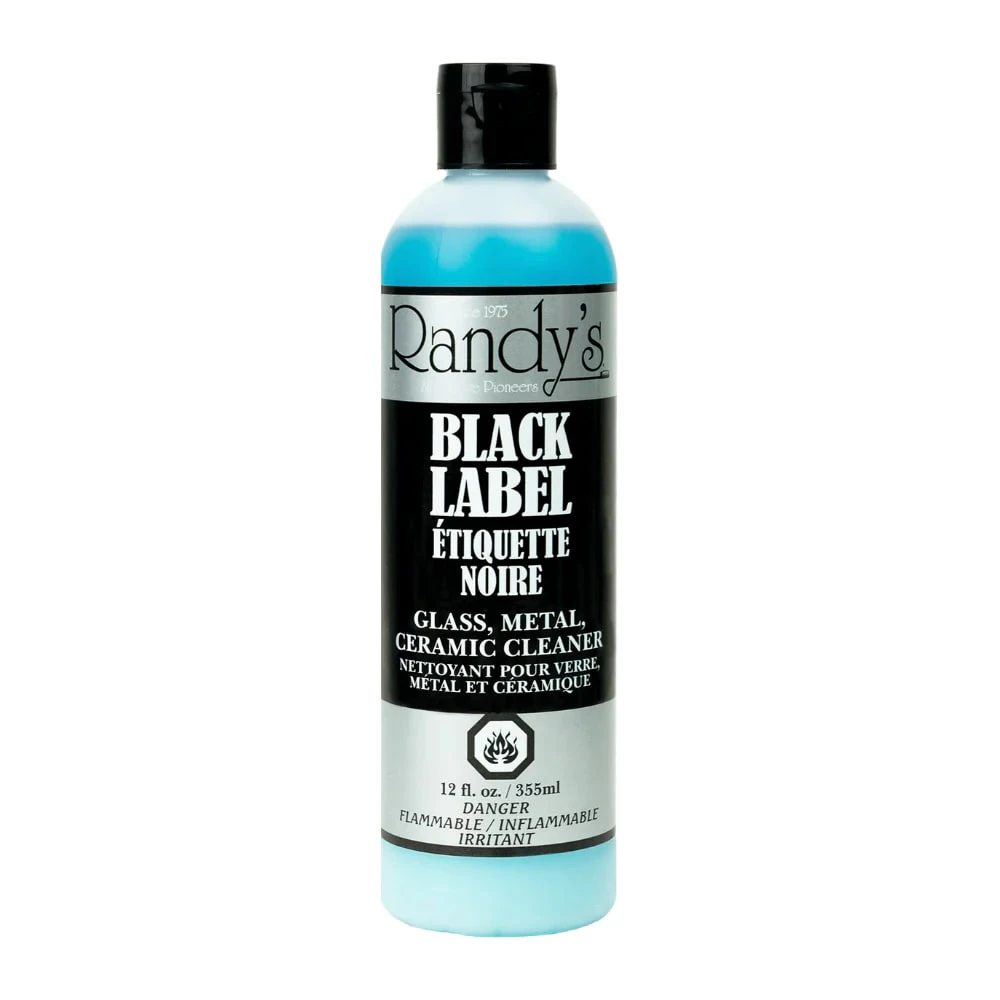Randy’s black label cleaner is one of our very best sellers. Black label is the best glass cleaner on the market. This response is based solely on the results that black label cleaner produces after every single use. Black label is a lightning fast resin and goo cleaning solution for any metal, glass, or ceramic smoking utensil. Just apply black label to any piece, shake, and let it soak for a few minutes before rinsing out in warm water.